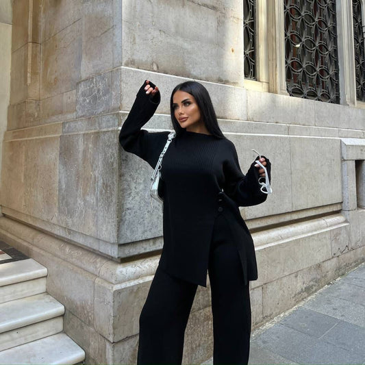 Ensemble noir ample avec ourlet contrastant